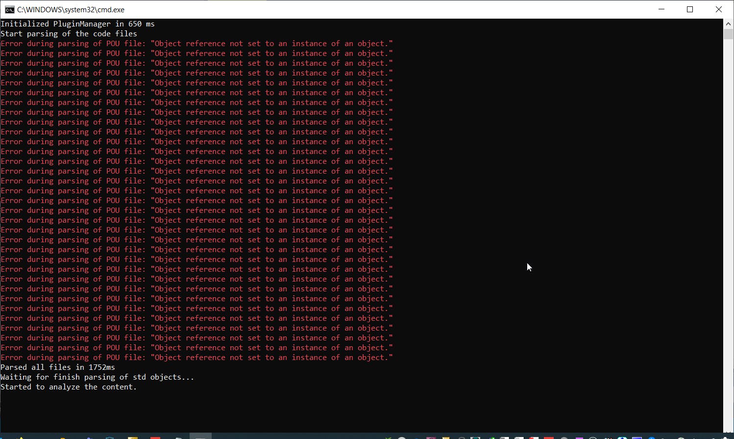 Code checker error info: error during parsing of pou : object reference not set to an instance ...