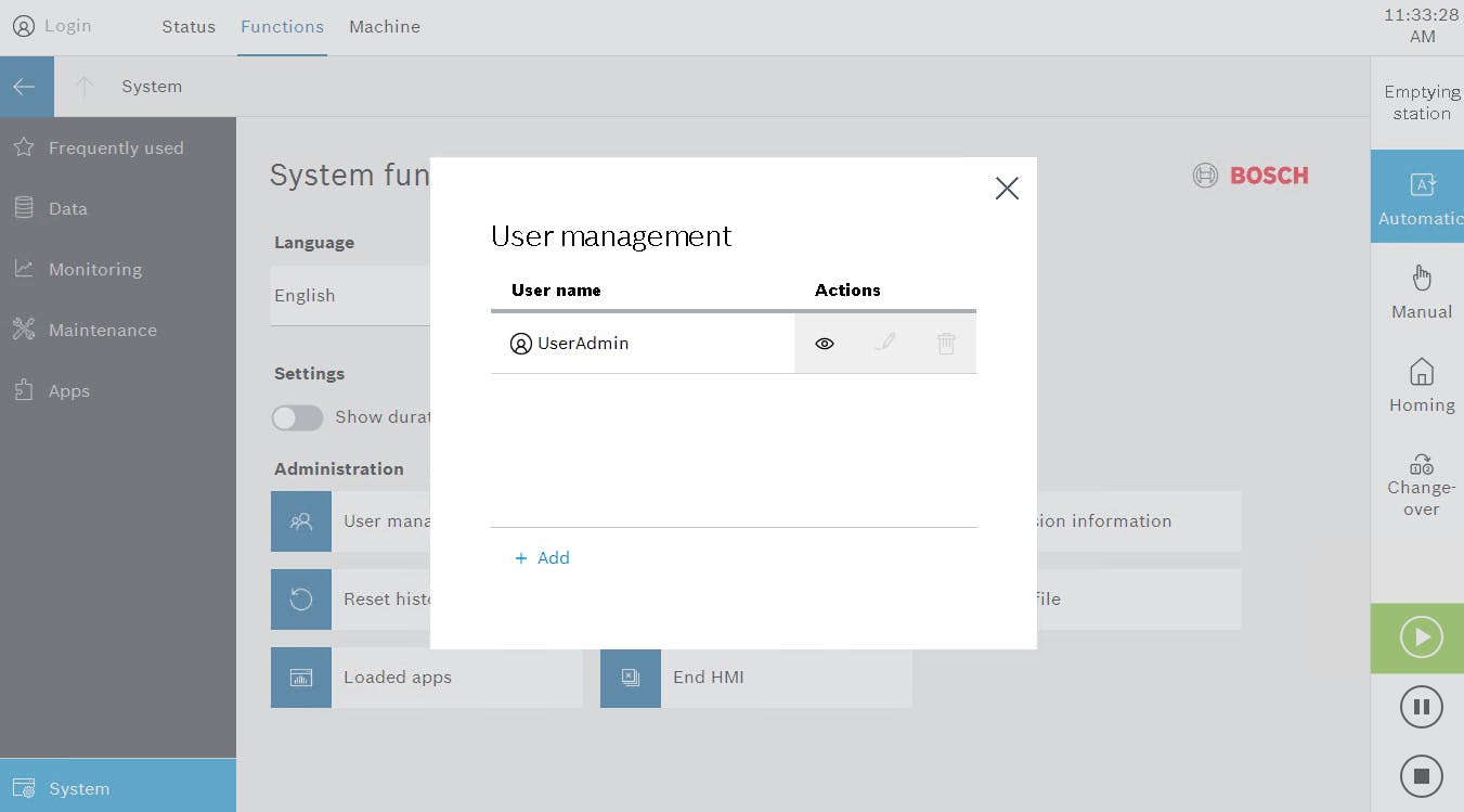 I have just set up the user management on the Nexeed HMI. Now I'm stuck, because I have no means of setting up users without knowing the default password for the UserAdmin user, which has been added automatically. Where can I find this password?