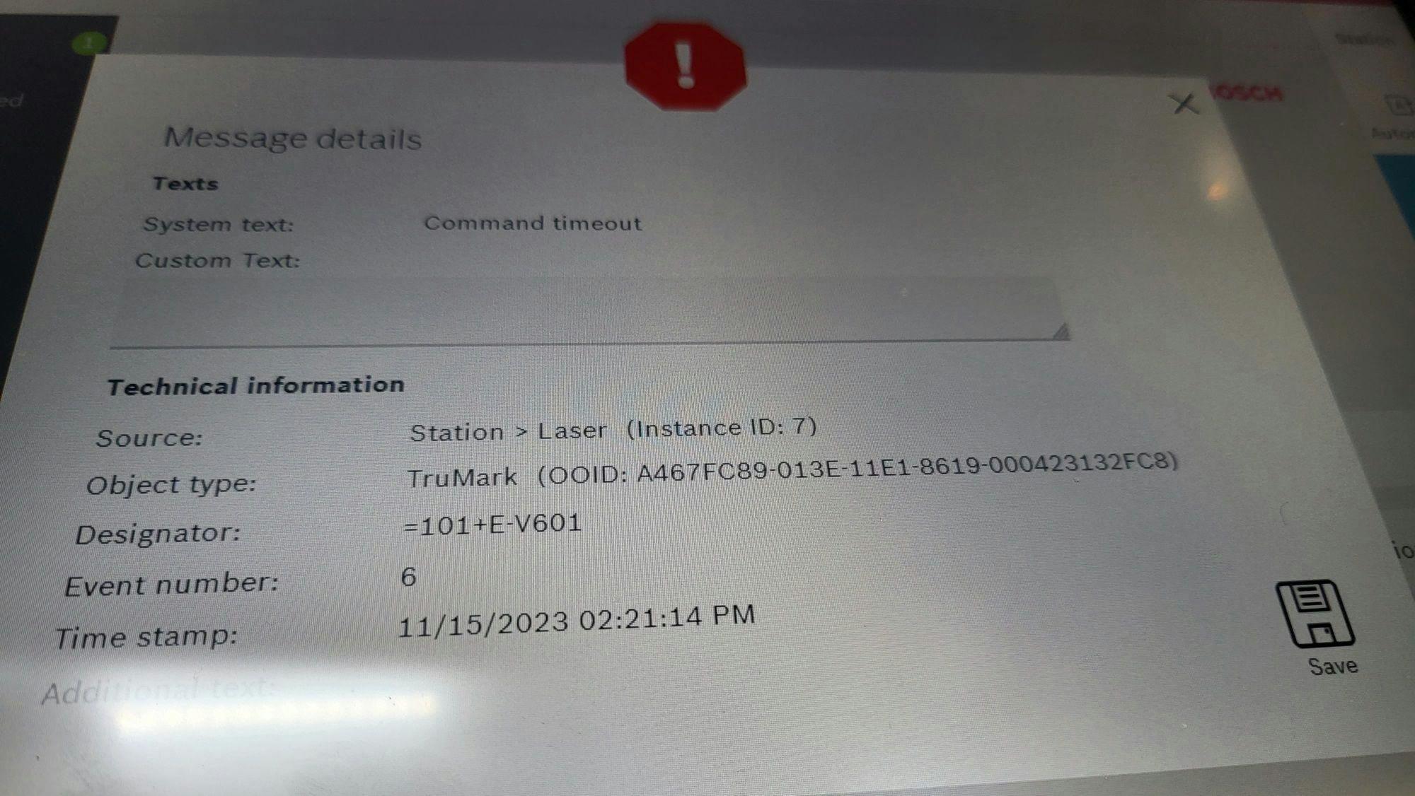 I have a problem that we have built several times the same machine with the trumpf laser. On some machines the "Turn off" button works and on others it does not work.