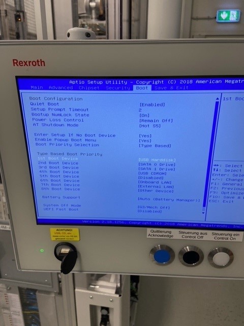 We have to update the Nexeed Image on some lines, running on V1, to the image version 2.22, and we have some problems on some PLC's, that when we put the new hard disk, and the image stick is not booting, and it is remaining blocked ( see picture attached 'HmiPlcFrozen' ). We have tried changing the USB port and also the image stick, but with no succes. We have compared the Boot settings from the BIOS, with a running PLC, and they are the same.