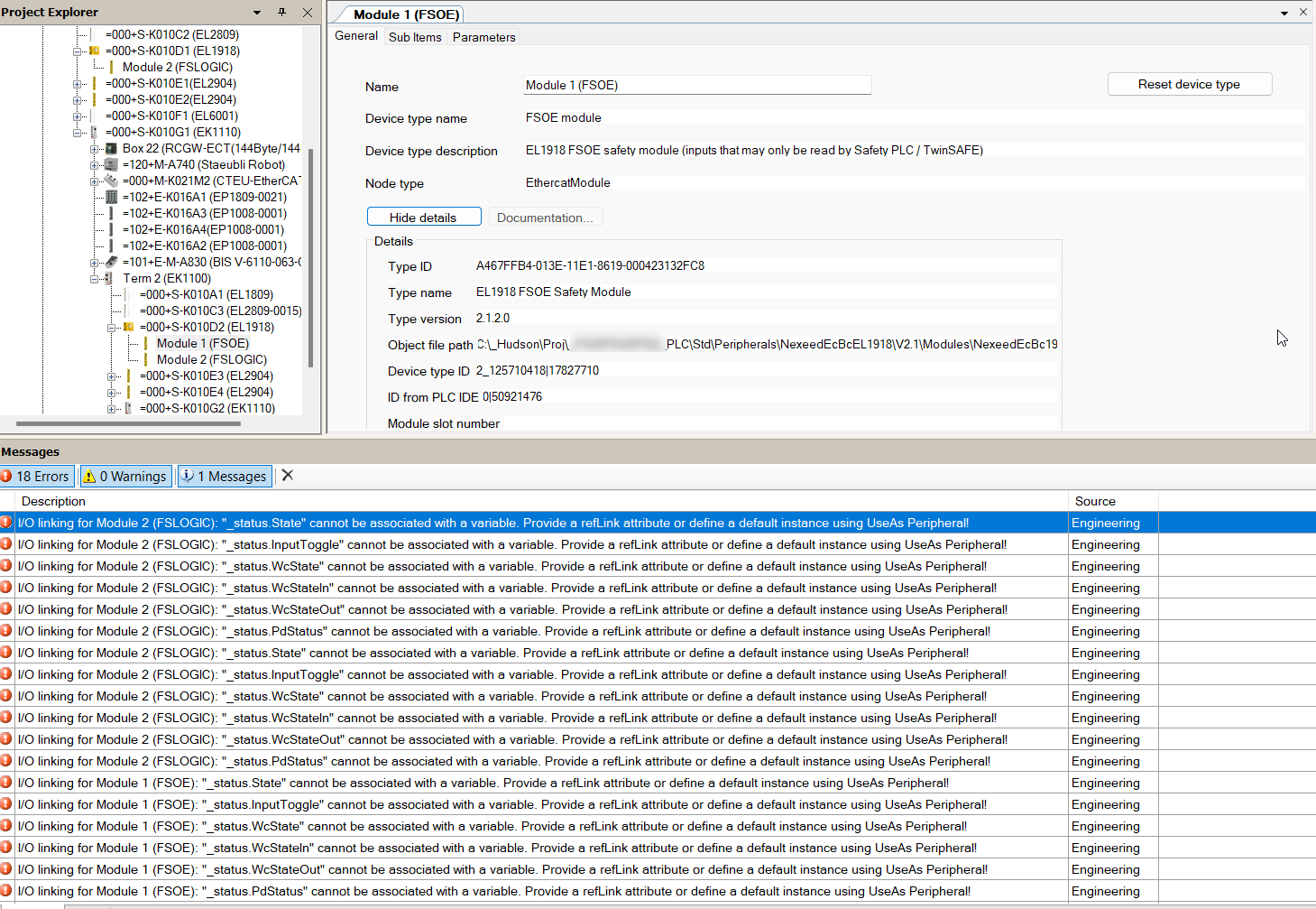 After the object EL1918 of Beckhoff is scanned from the TwinCAT, the CPS has several errors, I do not understand what it is meaning. Please see the attachments, thank you~