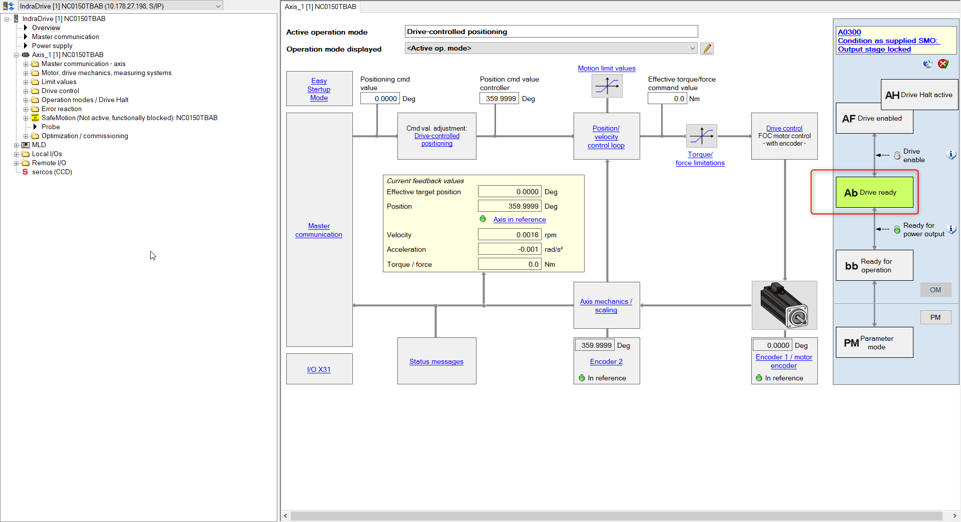when I use the Rotary table with drive(Rexroth drive), except rotary table's activate if I need to setup the axis of under the rotary table? like Axis.Extension.ParImm.Activate/speed/acc/dec and so on? I see I tried to trigger the 'drive on' on the HMI, but there is no response(no drive on signal, also no any hint), the drive is in the 'Ab' mode, not 'AF' need your help~ thank you