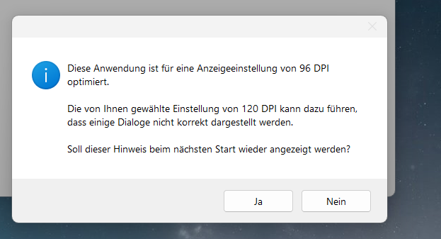 If you select a setting of 120 DPI, some dialogs may not be displayed correctly.
