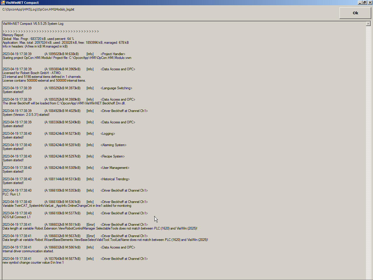 please make sure that the parameters of your plc library match the parameters in the variables.osd file ( ...\Std\Objects\NexeedProgrammableRobot\V1.x\Variables\variables.osd). By default the constant is set to 20 (see screenshots below)