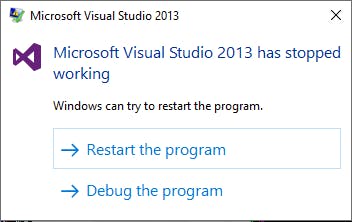 If you encounter a Visual Studio crash / TwinCAT XAE crash it usually looks like this or it may be even closed without message box: