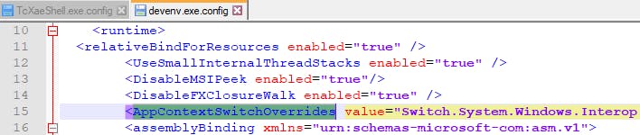 Zusätzlich enthält diese Datei noch nicht das Element namens AppContextSwitchOverrides. Das bedeutet, das ganze XML-Element mit den neuen Attributen muss hinzugefügt werden: